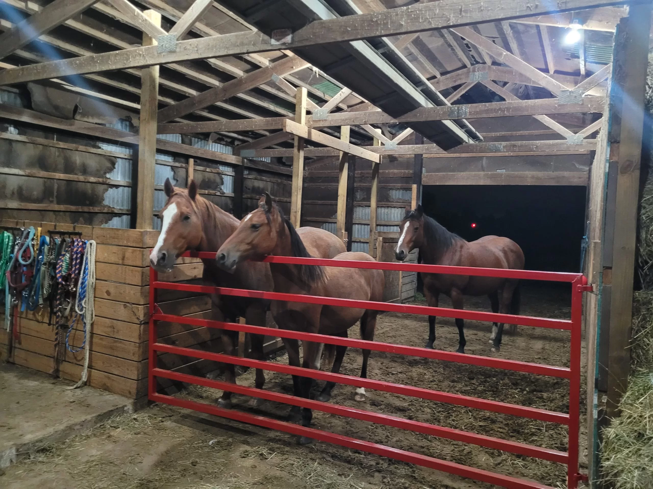 We’ve restored the old dairy barn, which now houses our layer and meat chickens. Our pigs and cattle call this place home too. And yes, the horses—oh, the horses! They’re still very much part of our family. Jeannie, Leigha, and Leo each have their own, and we even welcomed a young rescue horse into the mix.